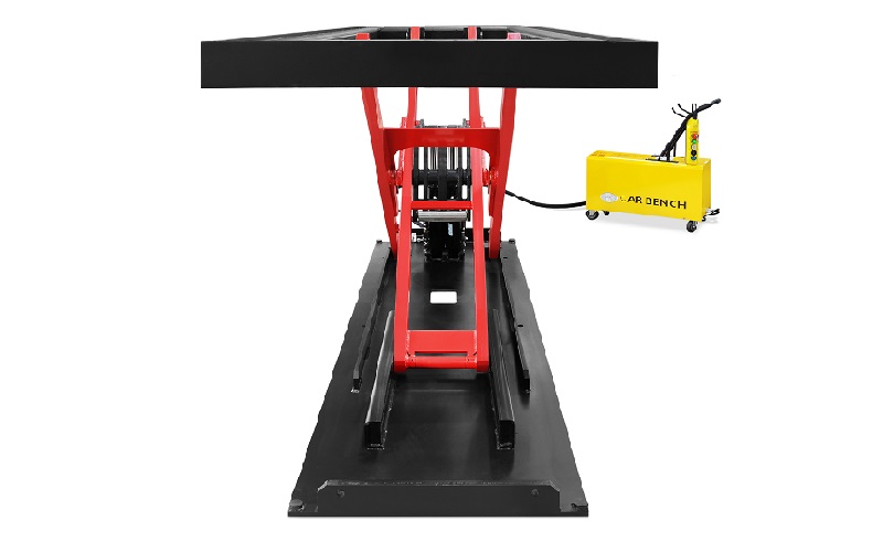 Il banco a tiro rapido 'Triton' è un banco montato su sollevatore elettroidraulico a forbice con doppio effetto.